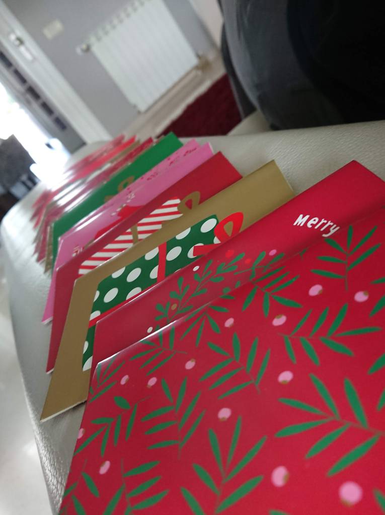 Eu encaro os presentes de Natal como sendo uma lembrança. O facto de eu me lembrar daquela pessoa nesta quadra onde se fala dos valores mais básicos da humanidade: paz, compaixão, respeito, cuidado, proteção. Com isto, quando vi uma bela caixa com postais de Natal, logo pensei: vou escrever um postal para os meus familiares e pessoas mais próximas!