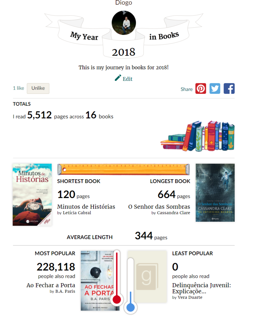 O ano de 2019 está à porta. A uns meros dias de distância. E por mais que a minha lista de leituras este ano não tenha passado das 15 – muito por conta de documentos científicos e teses não contarem para a contagem do Goodreads -, tenho de vos falar de alguns dos livros que mais gostei de ler este ano!