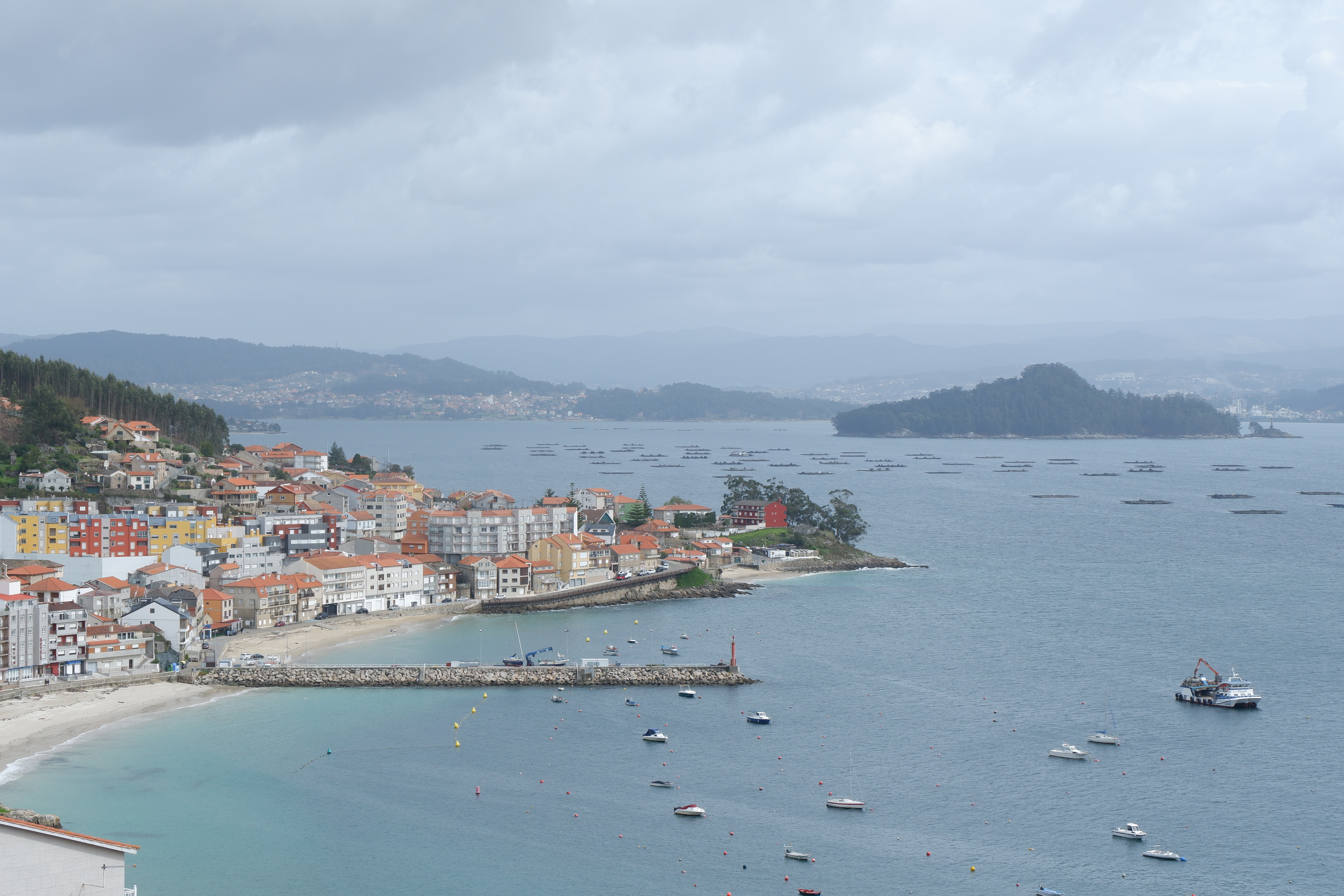 Foi deslumbrante ver as plataformas de criação de mexilhão, o que condiz com a restauração praticamente toda voltada para o marisco. Porém, numa altura em que já estávamos enjoados de batatas fritas, e pela falta de arroz, o almoço acabou por ser em Combarro, tendo à nossa disposição pizzas.