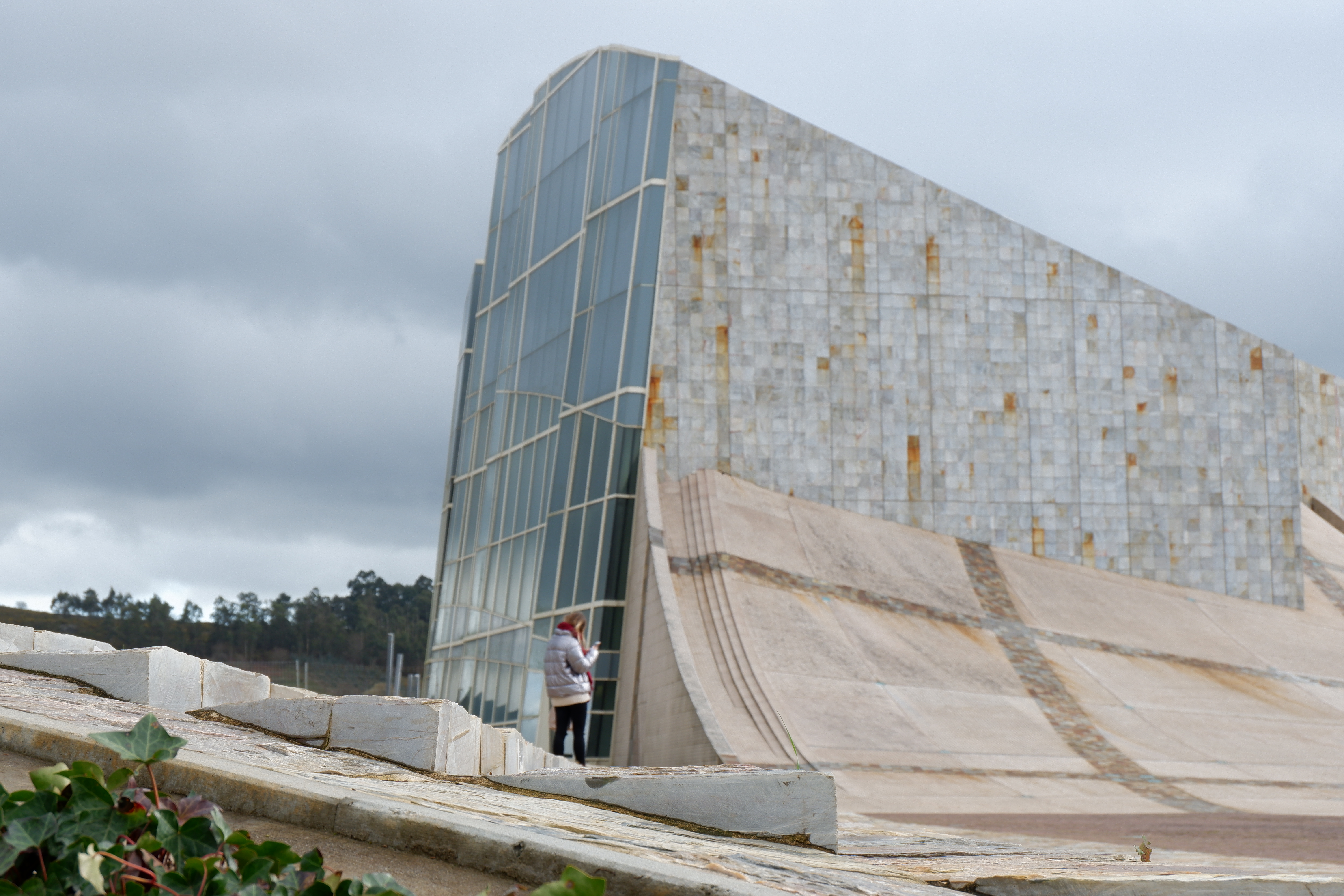 Por esta hora, já tínhamos chegado a Vigo, mas antes dessa viagem de uma hora, fomos descobrir um edifício que nos intrigava. Vejam, estamos habituados à arquitetura como retilínea. Mas e se vos falasse de um edifício que é, na verdade, um monte?