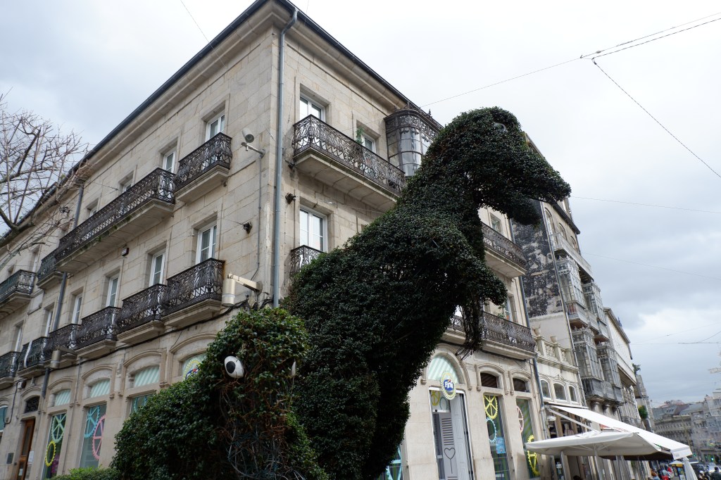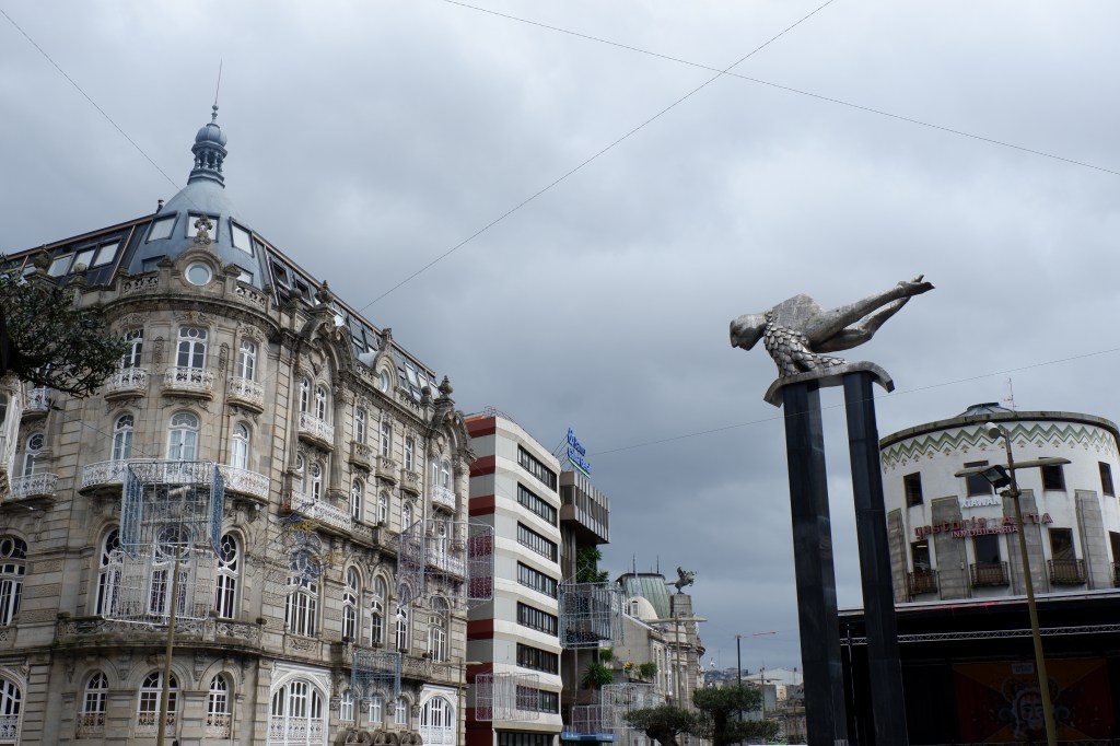É a Cidade Cultural e tem bibliotecas, salas de empreendedorismo, salas para conferências, um belo jardim literário, e uma vista deslumbrante para Santiago. Adoraria voltar a este sítio daqui a uns anos, ver o crescimento da sua vegetação e movimento. Já um outro movimento que vimos foi o de Vigo. Esta grande cidade conquistou rapidamente o meu coração pela sua arquitetura e movimento. Fiquei muito deslumbrando, e só tive pena de a chuva nos ter estrago os planos para a explorar em condições.