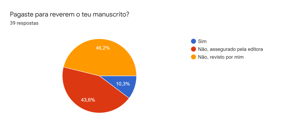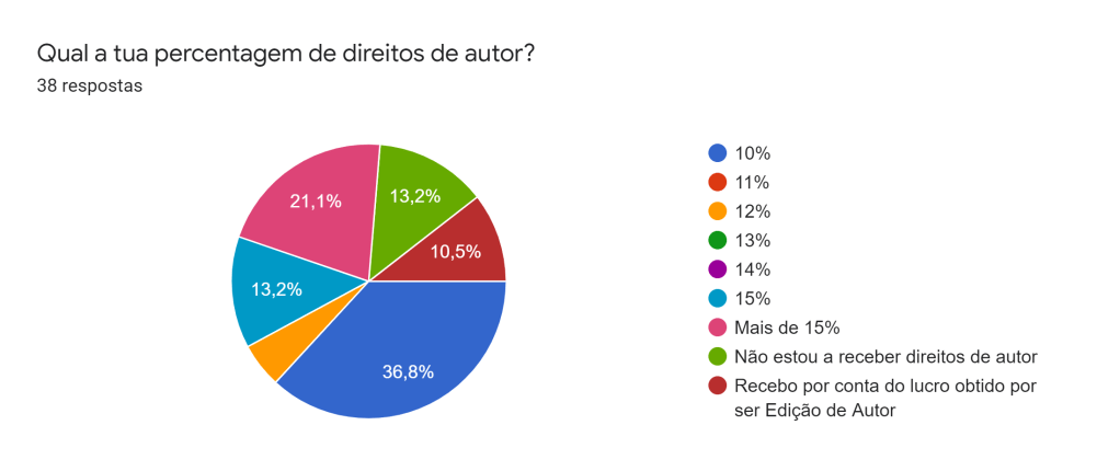 Não querendo segregar autores ao não questionar que método de publicação utilizaram, estas respostas podem levar-nos a pensamentos distintos como o facto de 7 autores não terem pago para editar. Algo que pode ter acontecido pela negociação com a editora e/ou um acreditar da editora no autor, ou até de um outro tipo de acordo. Exemplo? Bem, um autor, se acordado por ambas as partes, pode ter negociado prescindir dos seus Direitos de Autor até ter a edição paga.