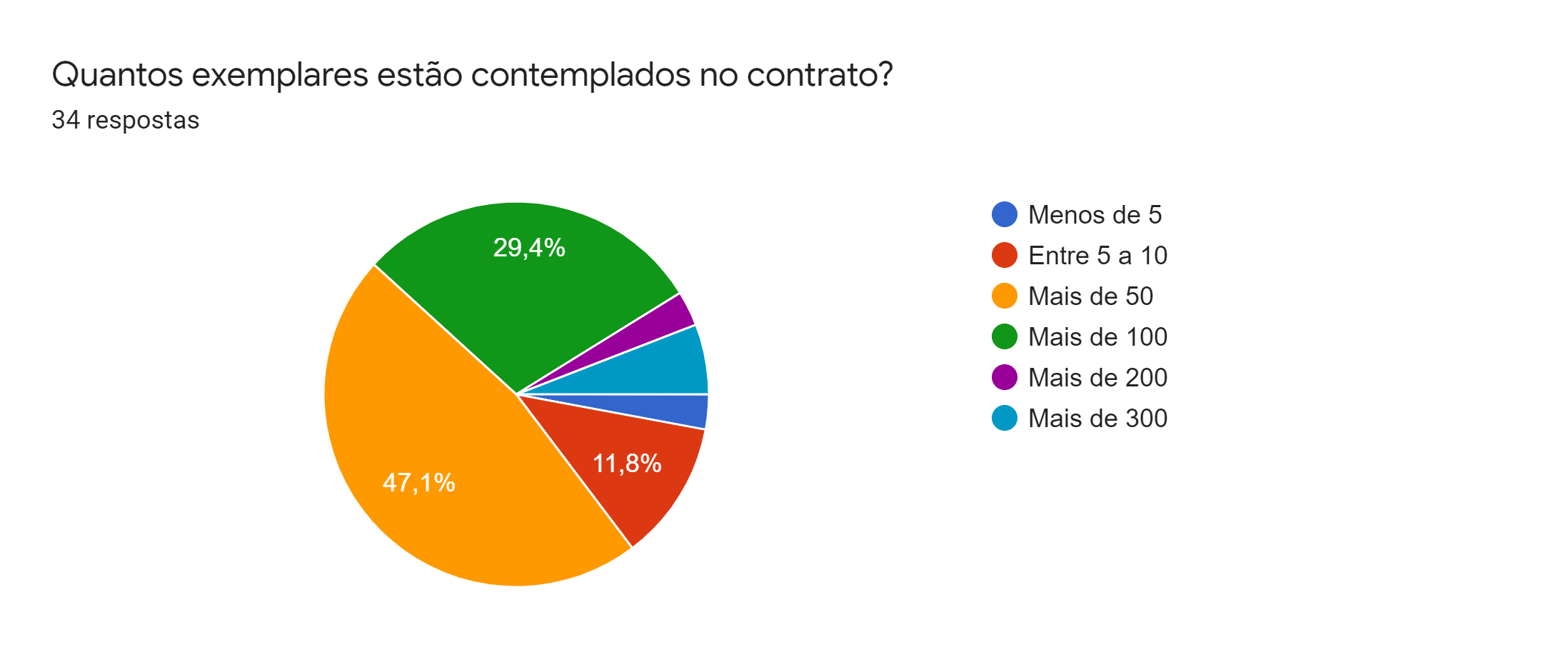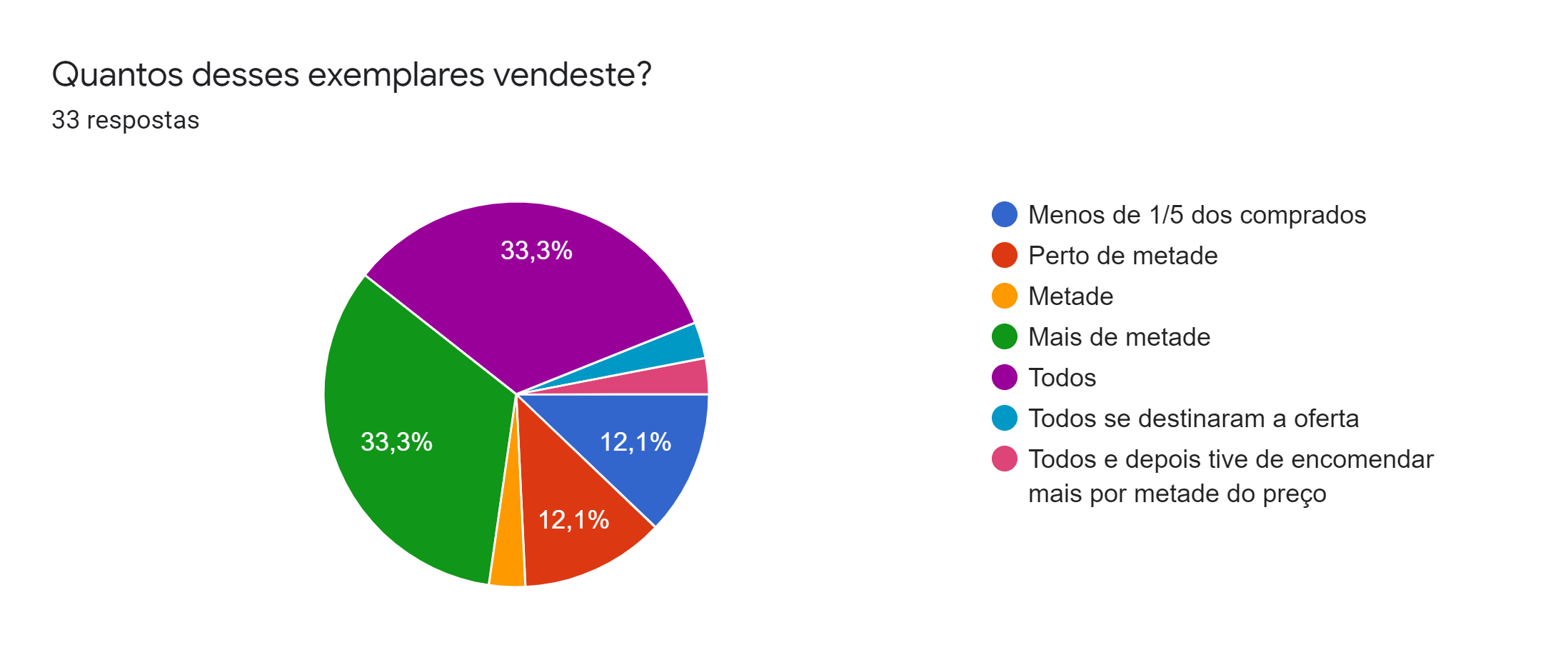 Trinta dos autores inquiridos tiveram de comprar exemplares, sendo que a maioria dos inquiridos refere mais de 50 exemplares e menos de 100.