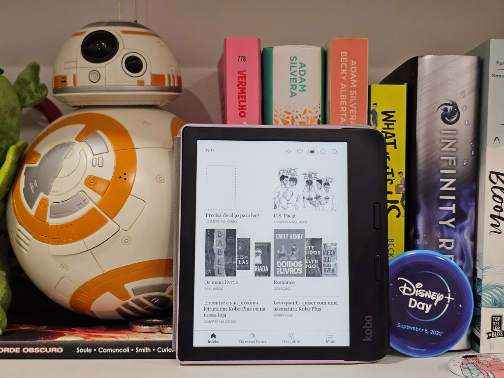 Após transferir o ficheiro para a memória principal do dispositivo, podemos ver isso ao iniciar a leitura de um livro. Não só o Kobo identifica o ficheiro como sendo proprietário, como oferece logo aquelas estatísticas lindas. Isto é ótimo para garantir que usufruímos de todas as capacidades do nosso aparelho.