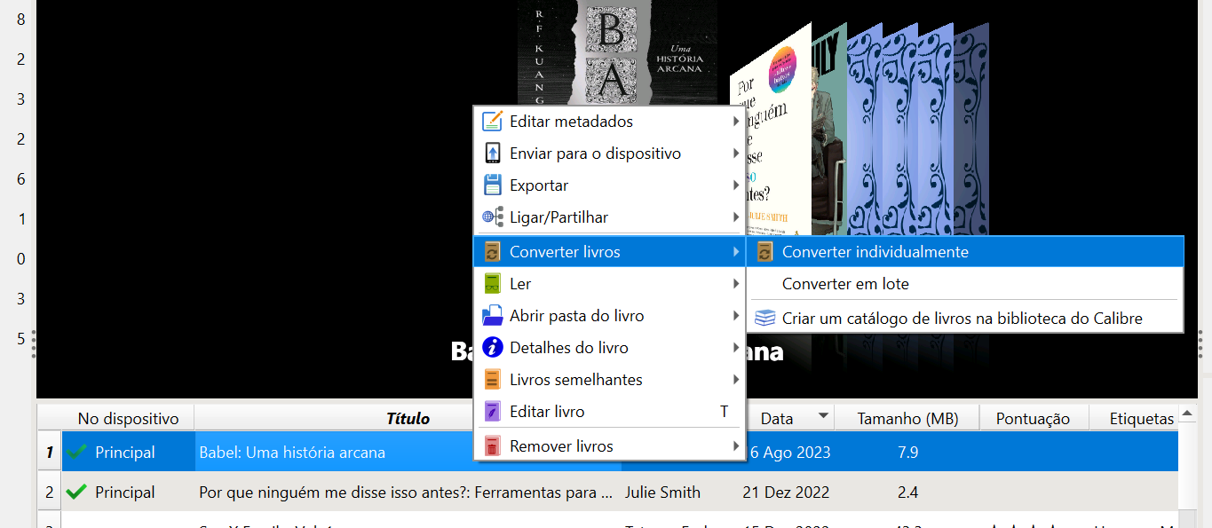 3 – Selecionar posteriormente o livro, ou livros, a converter: