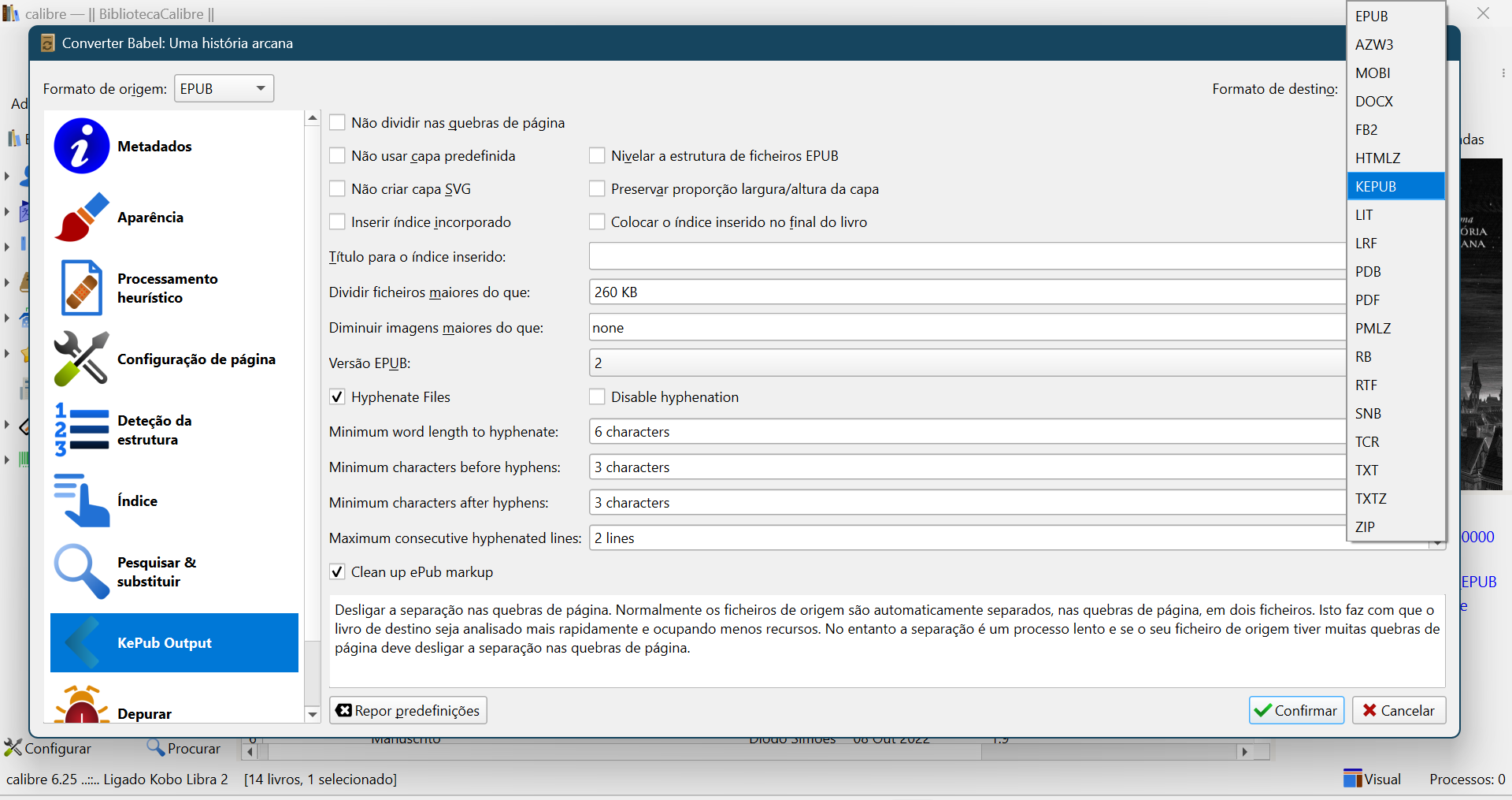 Posso converter ficheiros de outro formato em KEPUB?