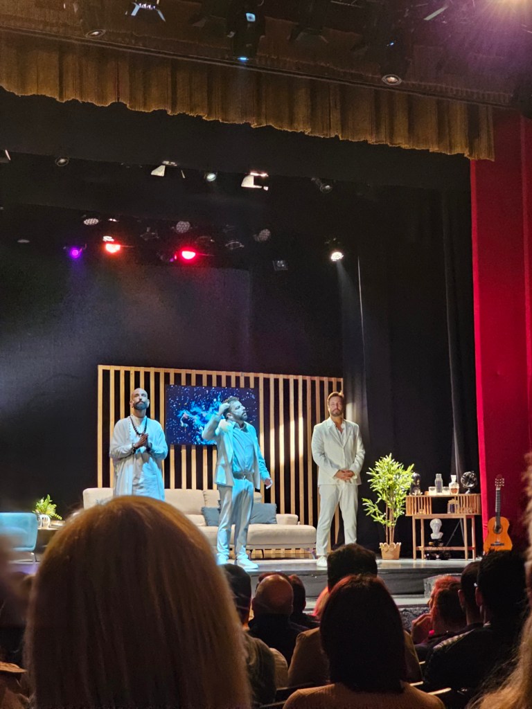Dentro deste enquadramento, a peça constrói um arco satisfatório para a personagem interpretada por Rui Santos – um irmão acusado de assédio verbal que, na verdade, vivia no armário e usava os piropos como forma de impressionar os amigos heterossexuais. Soa demasiado real, não é? O seu irmão, interpretado por Ricardo Castro, também embarca numa jornada de autodescoberta, reconhecendo desejos que até então reprimira, apesar de amar mulheres. E é com a ajuda do personagem interpretado por Dagu, numa espécie de jornada espiritual, que este último aprende a aceitar-se. No entanto, o desfecho da peça poderia ter sido mais subtil, evitando cair na comédia fácil e previsível.
